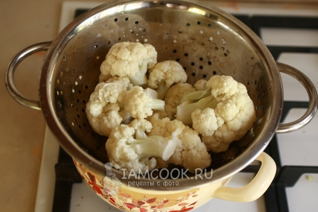 Капусту разобрать на крупные соцветия, промыть в прохладной воде.