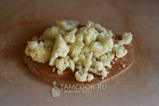 Цветную капусту, приготовленную на пару, мелко порубим.
