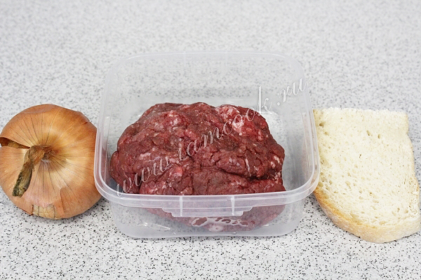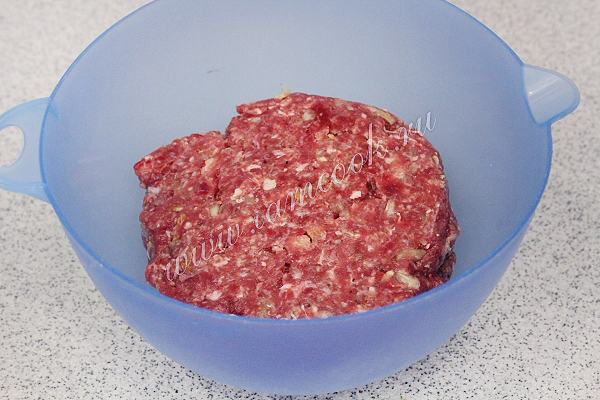 Затем тщательно смешиваю фарш, лук и отжатый хлеб, добавляю специи и соль, если фарш суховат, то доливаю воды.