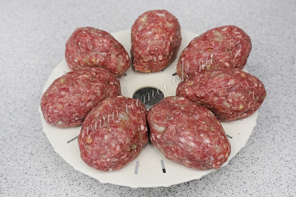 Формирую котлеты, наливаю в чашу мульти пол литра воды, ставлю паровую пластину с котлетами в чашу и включаю режим "пароварка" на 25 минут.