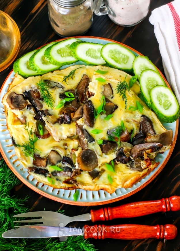 Спустя указанное время выключите нагрев и снимите крышку, омлет с белыми грибами полностью готов!