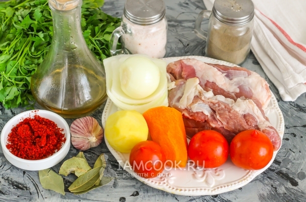Сам рецепт приготовления предполагает предварительное обжаривание продуктов, но помидоры лучше всего не жарить, а добавить вместе с морковью за полчаса до окончания варки. Если баранина жирная, то срежьте немного сала и протопите его в емкости, затем на расплавленном жире обжарьте мясо и лук.