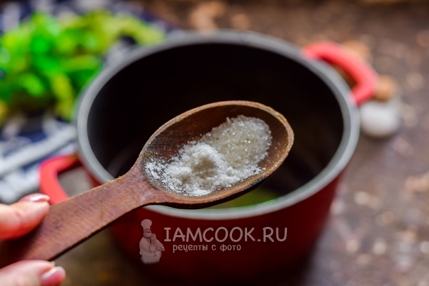 Последний раз слить воду в кастрюлю, добавить соль и сахар – варить минуту, добавить уксус.