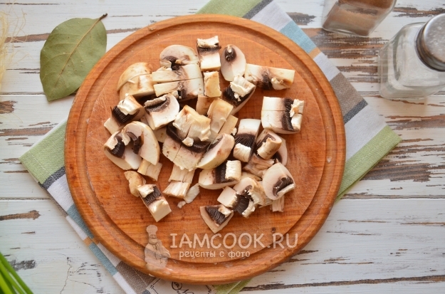 Грибы помойте и почистите при необходимости. Мелко их нарежьте.