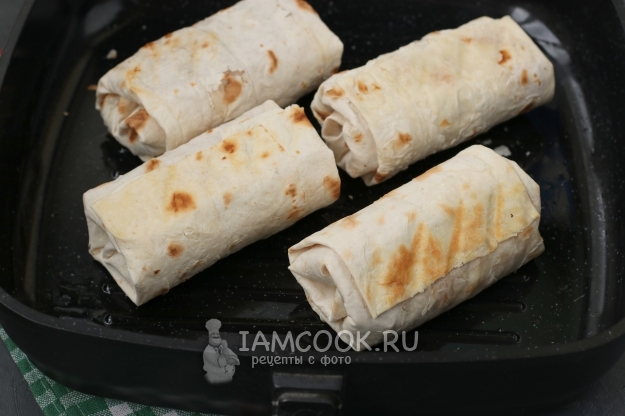 Хорошо разогреть сковороду-гриль, смазать растительным маслом, выложить рулеты и запекать по 5-7 минут с каждой стороны. По желанию можно запечь в духовке.