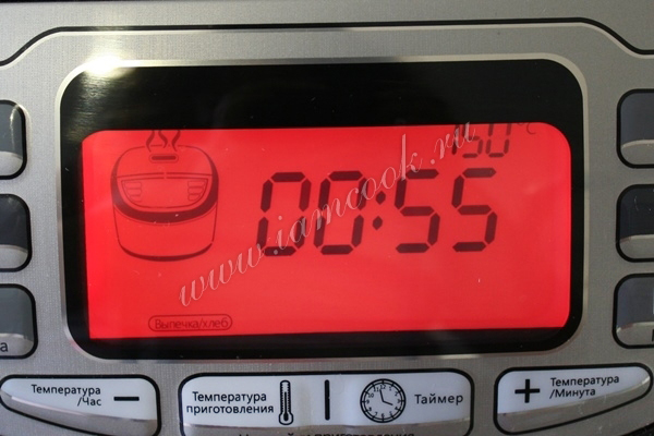 Выставьте программу «Выпечка/Хлеб» и время выпечки 55 минут.