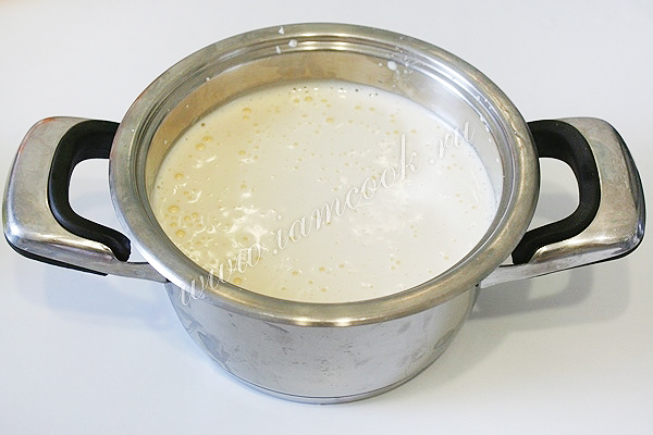 Яйца хорошо взбейте миксером. Не прекращая взбивания, в несколько приемов, всыпьте сахар и взбивайте еще 5 минут. Масса должна увеличиться в объеме примерно в 3 раза и побелеть.