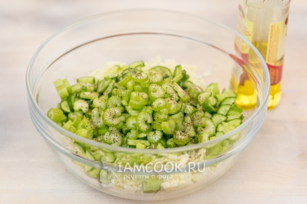 Сельдерея и огурцов не жалейте - дополнительная сочность салату не помешает.