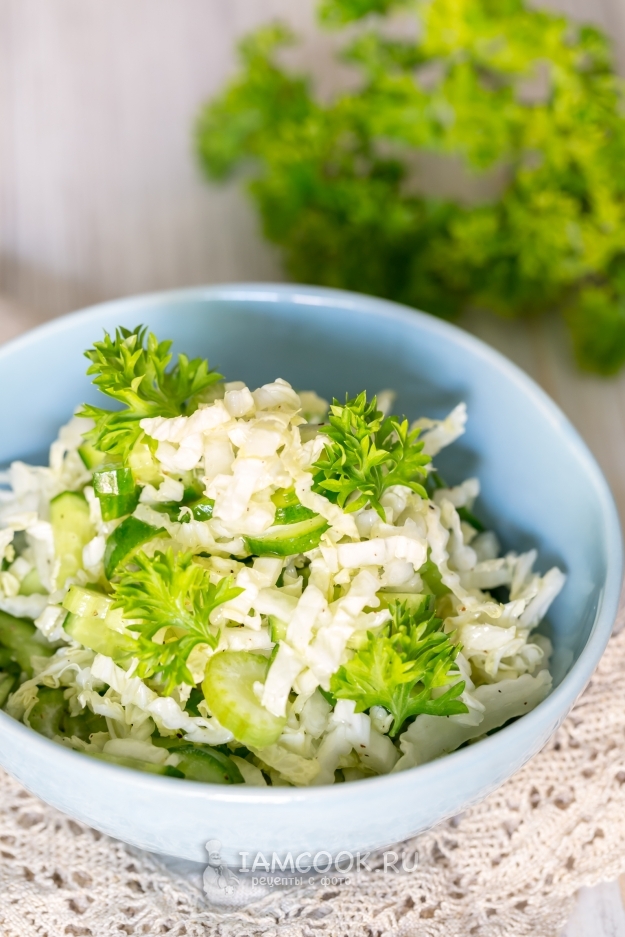 Перемешайте. Салат из свежих огурцов с пекинской капустой готов.