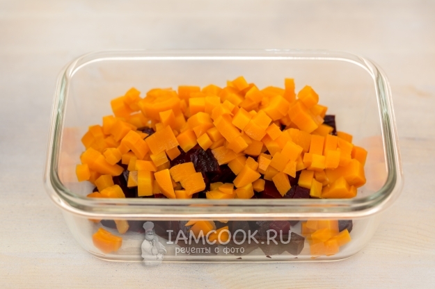 Свеклу очистите, нарежьте достаточно крупными кубиками.