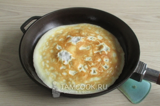 Пожарьте на растительном масле на сковороде в зависимости от её диаметра два или три тонких омлетных блинчика.