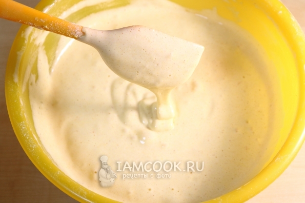 Тесто получается очень пышным, но при этом нежным. Работать с ним нужно бережно. Оно стекает с лопатки медленно, также задерживаясь на поверхности.