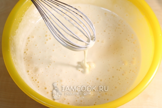 Взбиваем миксером пару минут до появления пузырьков. После чего всыпаем сахар.