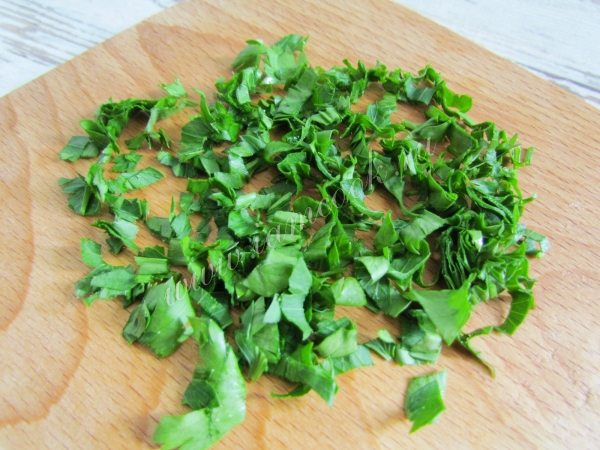 Перемешайте, накройте крышкой, выключите огонь и оставьте на 10 минут. чтобы блюдо пропиталось ароматом чеснока и зелени.