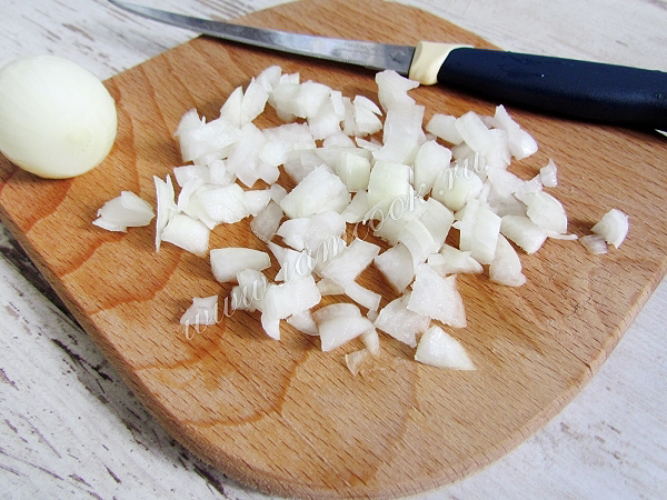 Добавьте к фасоли растительное масло и репчатый лук, жарьте 3-5 минут на среднем огне, помешивая.