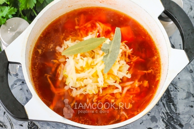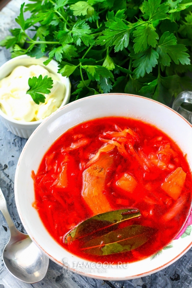 Если вы любите такое первое с фасолью, то можете дополнительно приобрести баночку консервированной фасоли, белой или в томате, и добавить ее непосредственно перед окончанием варки в кастрюлю. Отлично дополнят борщ и укроп, петрушка, другие пряные травы.