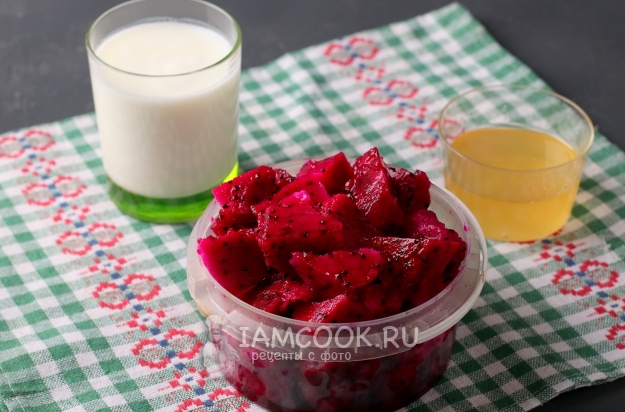 Для приготовления смузи с драконьим фруктом на айране подготовить из списка необходимые ингредиенты.