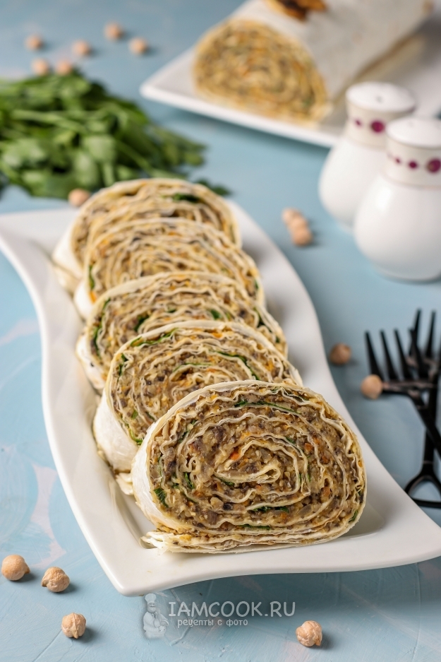 Сегодня хочу предложить постный вариант рулета из лаваша с нутом, шампиньонами, морковью и луком. Для тех, кто соблюдает пост, такой вариант закуски станет палочкой выручалочкой, так как благодаря нуту рулет получается очень питательным. По желанию в состав можно добавить чеснок, чтобы усилить вкус, но я не добавляла, так как готовила дочке на работу. Зелень тоже можно добавить по желанию - это может быть укроп или петрушка.