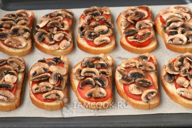 Предлагаю вам вкуснейшие горячие бутерброды с грибами и помидорами. В этом рецепте шампиньоны предварительно маринуются в соевом соусе и благодаря этому бутерброды получаются очень сочными, а батон остаётся хрустящим. За рецепт благодарна своей подруге Галине из Донецка - в таком виде шампиньоны для бутербродов ещё не использовала.