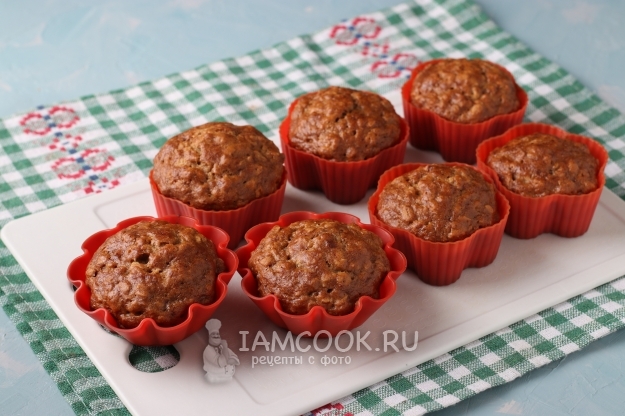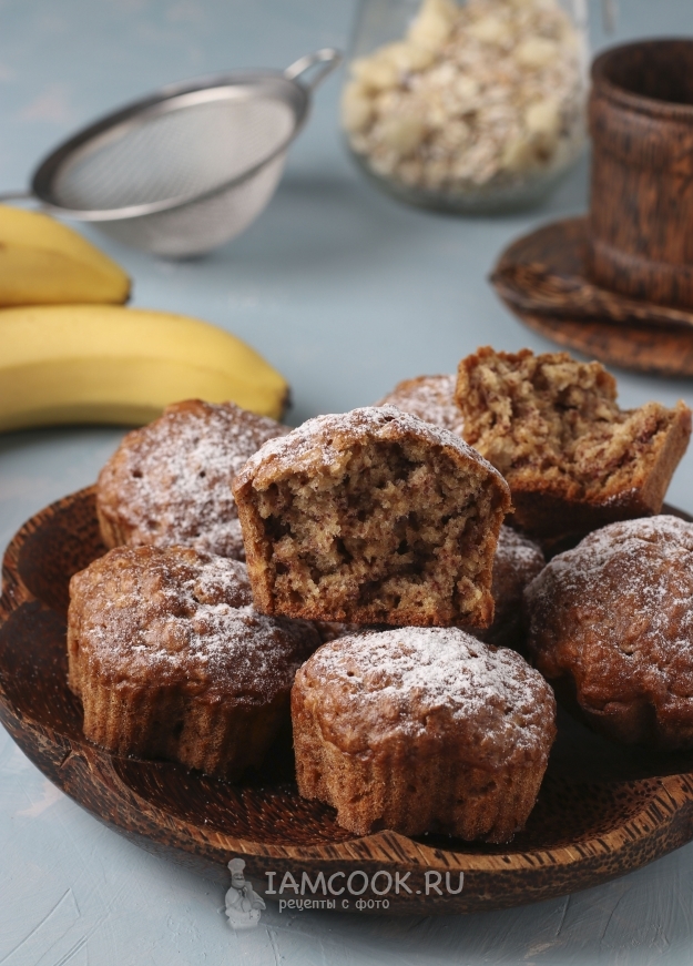 Духовку разогреть до 180 градусов и выпекать овсяные кексы с бананом 20-25 минут, до готовности.