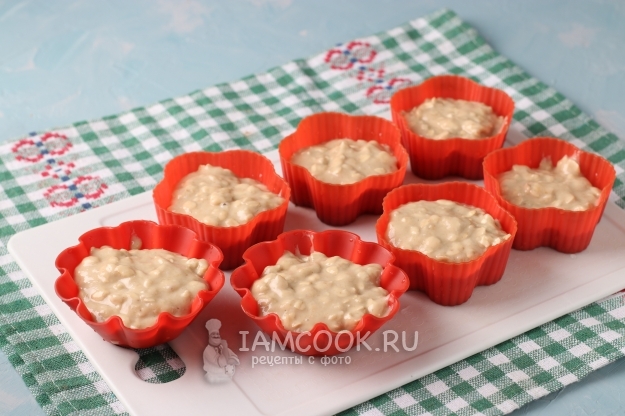 Разложить тесто на 2/3 глубины в силиконовые формочки.
