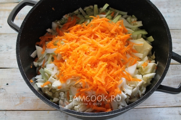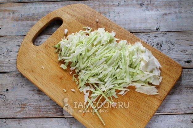 Лук очистите от чешуи, морковь - от кожицы, капусту - от зеленых и поврежденных покровных листьев. Нашинкуйте спелую капусту тонкими полосками.