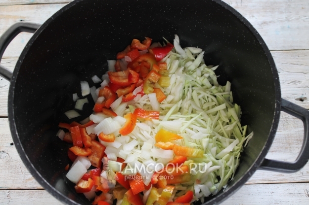 Сложите овощи в казан - в нем готовить подобные рецепты удобнее всего.