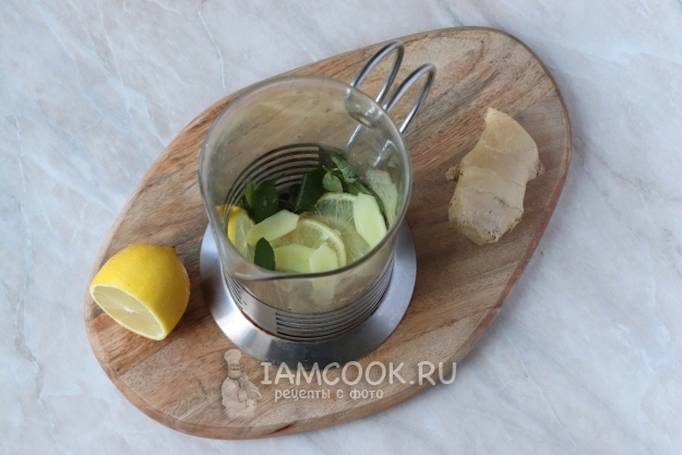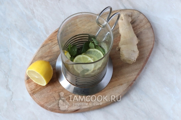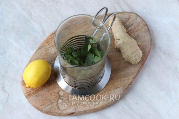 Для приготовления имбирного чая с мятой и лимоном готовим продукты по списку к рецепту.