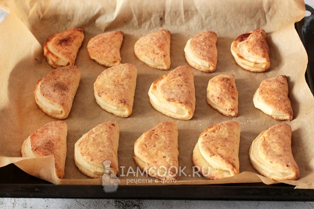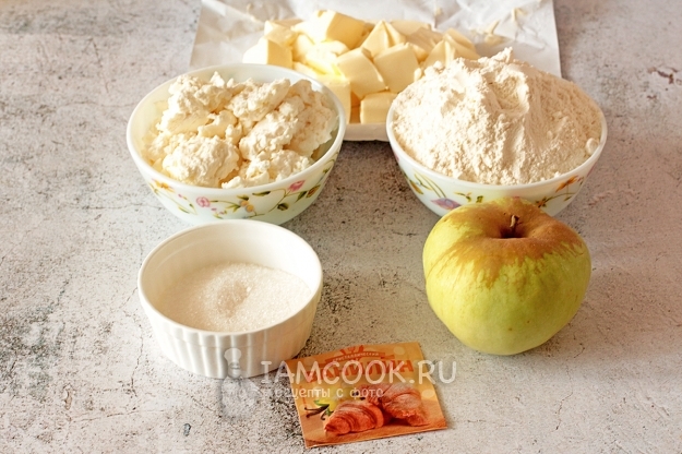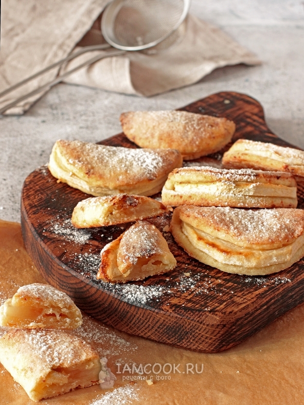А я снова к вам с творожным тестом)). Оно практически универсально. Все знают и пробовали творожное печенье «ушки-треугольники» и всем оно пришлось по душе. Только теперь это тесто более рассыпчатое по составу, а начинкой к нему идут целые кусочки яблока. Выпечка с небольшим количеством сахара, поэтому для больших любителей сладкого не подойдет, разве что яблоки взять сладкие и больше сахара положить в тесто. Я использовала самый кислый сорт яблок - антоновку, как раз сейчас для нее сезон открылся.