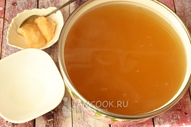 За это время напиток немного остынет, самое время добавить лимонный сок и мед.