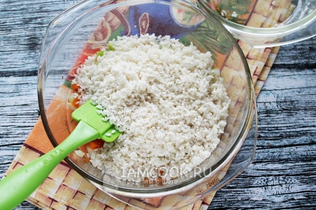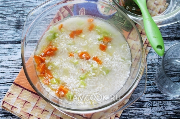 Эмпирически я уже вывела для себя формулу: на 1 стакан круглозерного риса требуется 3/4 стакана воды. Но это не точно, когда добавляем другие ингредиенты. Поэтому удобнее регулировать блюдо на выходе.