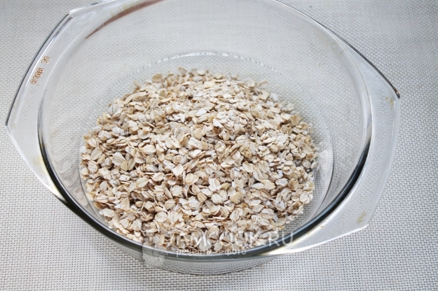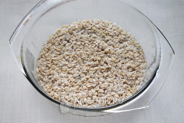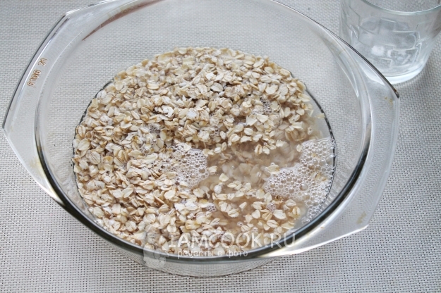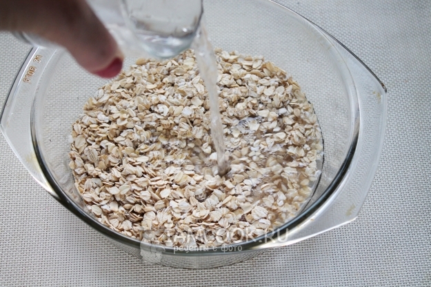 Залейте хлопья водой так, чтобы она покрыла крупу.