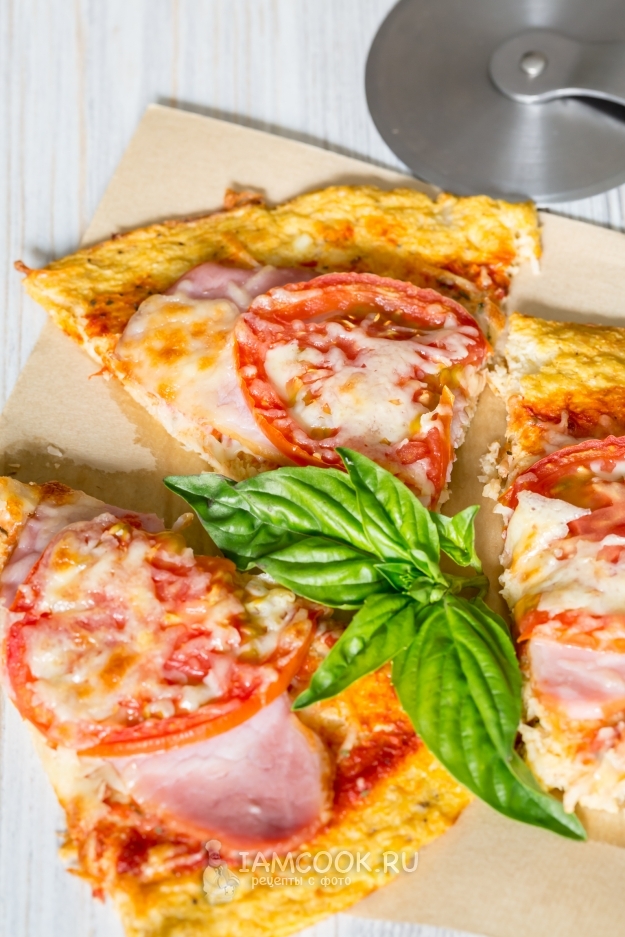 Для приготовления пиццы из цветной капусты (без муки) с ветчиной подготовьте продукты по списку.
