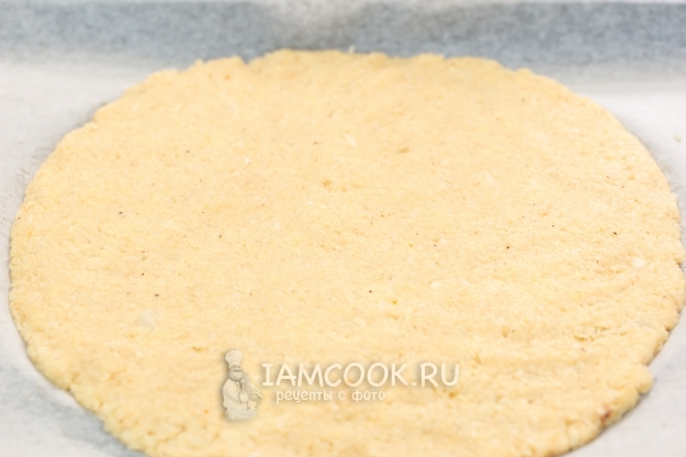 Выложите полученное "тесто" на противень, застеленный пергаментом.