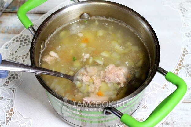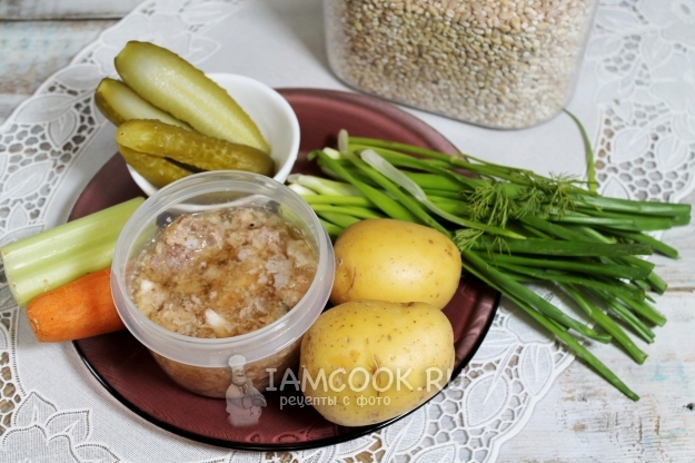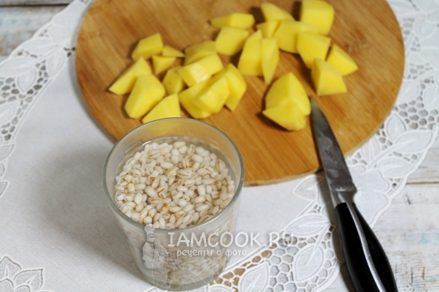 Продукты для супа с перловкой и тушенкой подготовьте по списку.