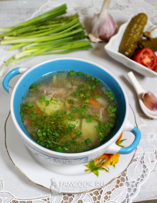 Хорошо, если у вас в запасах хранится домашняя тушенка. Она может быть любой - из свинины или говядины, гусиная или куриная. С любой домашней тушенкой рассольник получится вкуснее и наваристее.