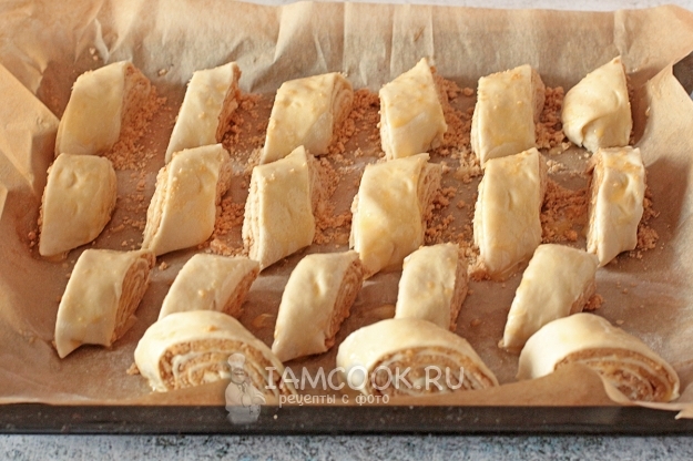 Готовые слойки с крошкой подайте к чаю или кофе. Приятного вам!