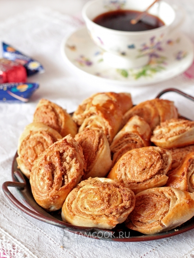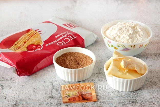 Если нет коричневого сахара, можно взять и обычный белый, только вкус немного пострадает (не думаю, что так уж сильно). Слоеное тесто лучше приобрести то, которое готовится на сливочном масле, а не маргарине. Но как уж получится, все равно выпечка вас порадует.