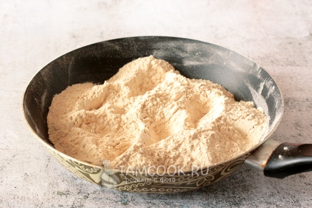 Сначала обжарьте муку на сухой сковороде до красивого золотистого цвета. Не отходите от плиты и постоянно помешивайте ее. Обжаренную муку полностью остудите.