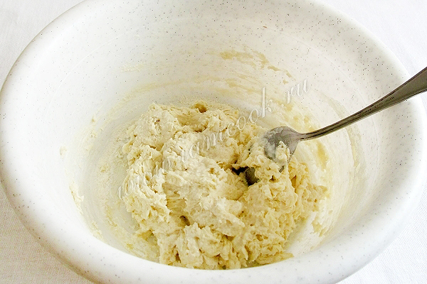 Затем нужно подсыпать муку, сколько тесто возьмет. Примерно может понадобиться 2- 2,5 стакана муки.