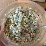 Салат с фасолью, яйцами и огурцами готов.