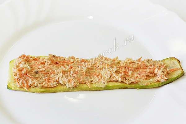 Каждую пластинку кабачков смажьте морковно-ореховой массой.