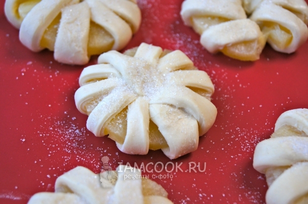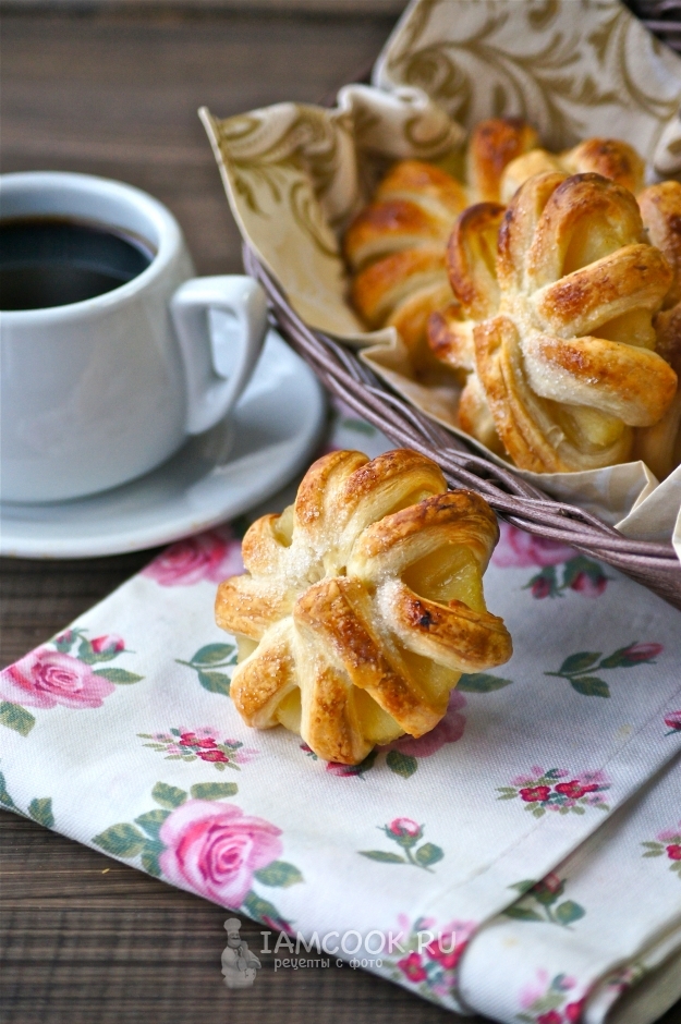 Румяные, ароматные слойки с ананасами (в слоеном тесте) готовы.
