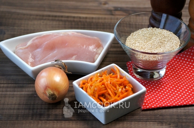 Итак, подготовьте все необходимые продукты для приготовления киноа с курицей.