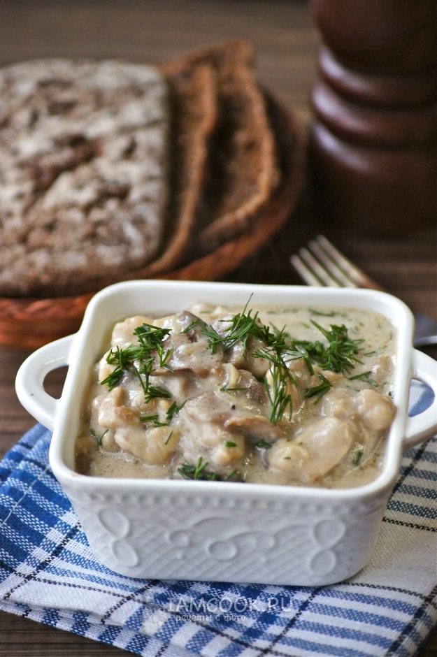 Бефстроганов - популярное блюдо русской кухни, обычно готовят из мелко нарезанных кусочков говядины и тушат в сметанном соусе. Я же хочу поделиться рецептом бефстроганов из курицы с грибами. Для данного рецепта я использую филе куриного бедра, мне кажется, эта часть курицы идеально подходит для данного блюда. А грибы добавляю разные, чаще лесные, но сегодня решила использовать шампиньоны, они тоже великолепно подходят.