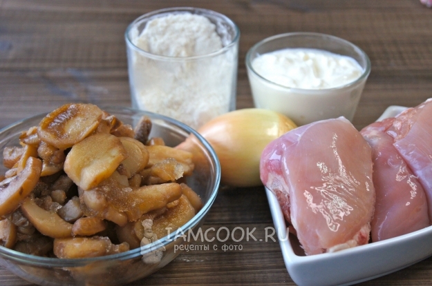 Подготовьте все нужные продукты для куриного бефстроганов с грибами и приступайте к приготовлению.