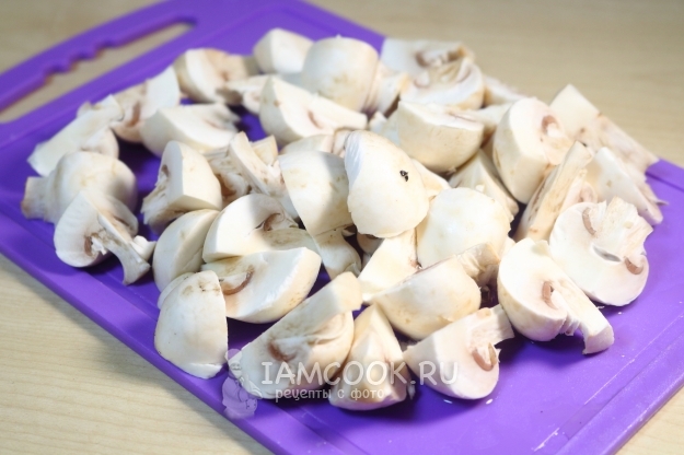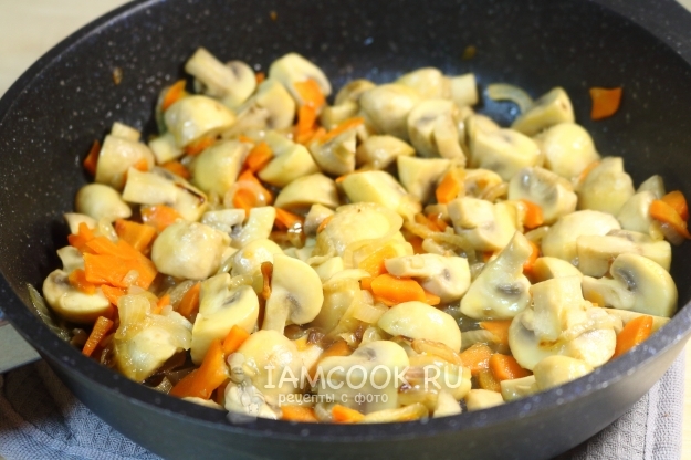 Добавляем в кастрюлю тушеные овощи с грибами.