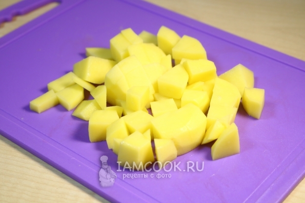 Картофель нарезаем небольшим кубиком, чтобы он быстрее сварился.