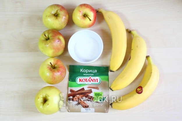 Для приготовления я использую яблоки и бананы в произвольном соотношении - пускай у вас доминирует тот фрукт, который вы любите больше. Яблоки лучше брать сладкие, а бананы - спелые, тогда дополнительно сахар может и не потребоваться. Особый вкус пюре придаёт, конечно же, корица - её я кладу на свой вкус. Итак, приступаем.
