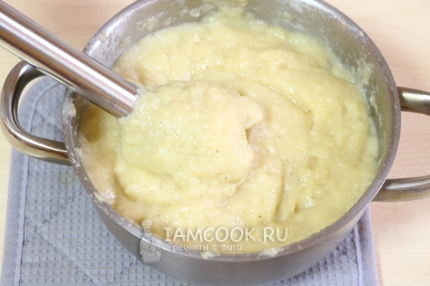 Перемешиваем и прогреваем всё вместе 2-3 минутки, перемешивая массу, чтобы она не пригорела. В принципе, пюре у меня образовалось само собой. Поэтому можно обойтись без использования блендера и размять массу ложкой до желаемой однородности.
